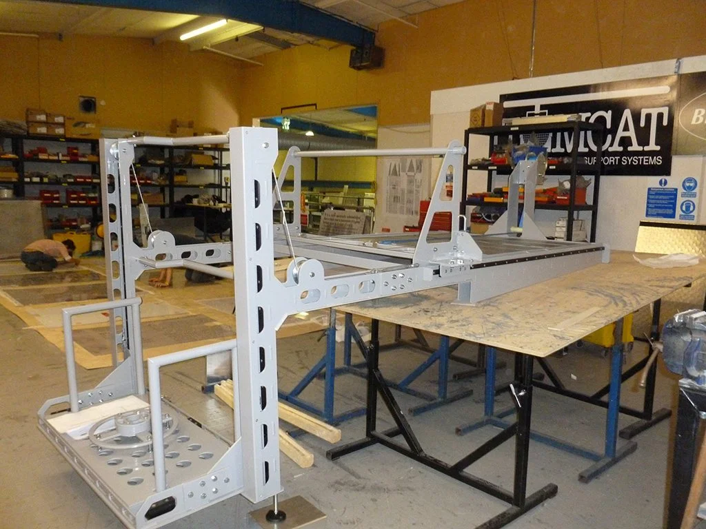 This was an interesting project I worked on for the 2012 Olympic Games. I was involved all the way from the initial site survey, all the way to supervising the assembly on site. I took survey dimensions, developed a design and consulted a structural engineer who ran calculations for the required ballast weight and cantilever. Then I had all the components cut/ machined and ordered. I took the parts to the powder coaters, then I did a final test assembly in our workshop to ensure everything worked correctly before then taking it to site myself in a large van, where I then supervised the assembly on site.